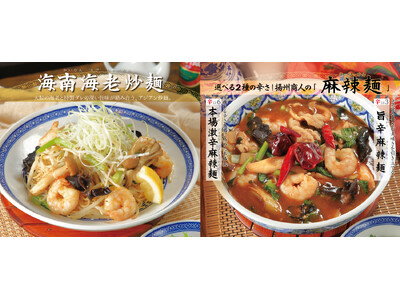 【中国ラーメン揚州商人】秋限定メニュー登場!「海南海老炒麺」と、選べる2種の辛さの「麻辣麺」が9/16より首都圏38店舗で期間限定で販売開始
