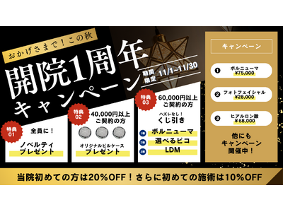 11月限定!感謝を込めて "特別割引&プレゼント企画" 実施 ~美しさは人生を明るくする。あなたの「なりたい美」を叶える1ヶ月~ エトワールクリニック開院1周年 名古屋にオープンした美...
