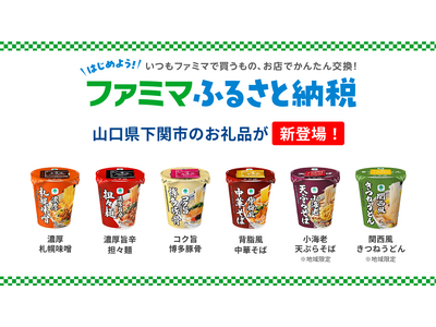 「ファミマふるさと納税」に山口県下関市が参画!濃厚札幌味噌など人気のカップ麺6商品が新たにラインアップ!~ファミマルカップ麺の無料クーポンがあたるキャンペーンも実施~