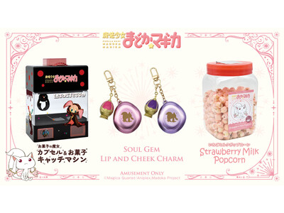 TVアニメ『魔法少女まどか☆マギカ』自分だけのデザインにカスタムして遊べるキャッチマシン、ソウルジェムのチャーム付リップ&チーク、シール付ポップコーンポットが1月4週・5週にプライズで順次登場!
