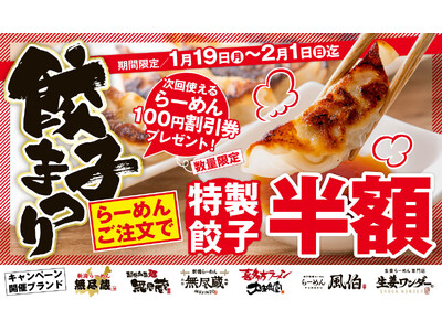 【家計応援】全国で開催!「餃子半額まつり」キタカタグループの人気らーめんブランドで同時開催、餃子が半額に!