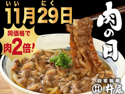 株式会社グルメ杵屋グループの株式会社グルメ杵屋レストラン(大阪市住之江区北加賀屋三丁目4番7号、代表取締役:椋本 充士)が運営する「自家製麺 杵屋」では、2025年11月29日(土)「いい肉の...