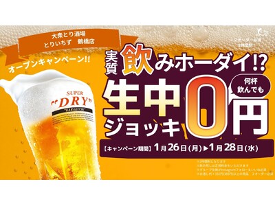 大衆とり酒場「とりいちず」大阪・鶴橋に1月23日(金)新店舗オープン!グランドオープンを記念し、生ビール0円キャンペーンを実施