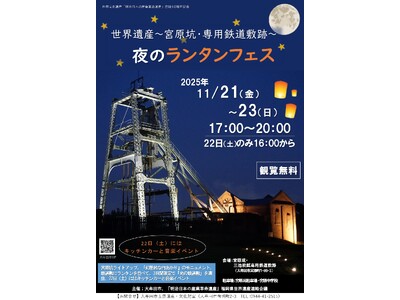 大牟田市 世界文化遺産「明治日本の産業革命遺産」登録10周年記念のイベントとして、宮原坑にて夜のランタンフェスを開催します! 宮原坑ライトアップ、「幻想的な竹あかり」のモニュメント、鉄道敷にラ...