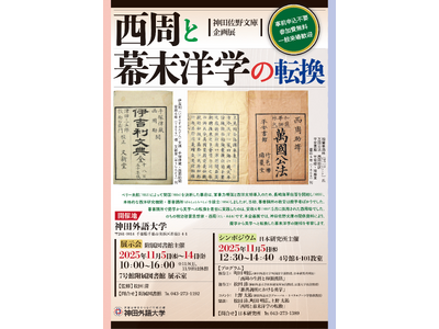 神田外語大学(千葉市美浜区/学長:宮内孝久)附属図書館は、2025年11月5日(水)から14日(金)にかけて、神田佐野文庫企画展「西周と幕末洋学の転換」を開催します。本展では、幕末の本格的な西...