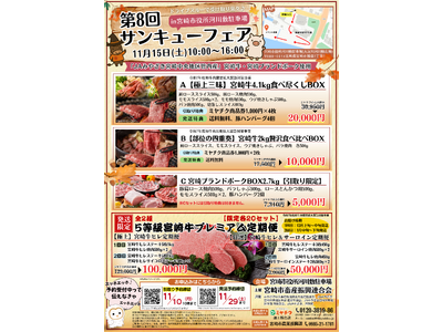 【予約限定 肉箱 受付中】11/15(土)開催!第8回 サンキューフェア!お見逃しなく!宮崎牛・ブランドポークがお得に買えるチャンス!