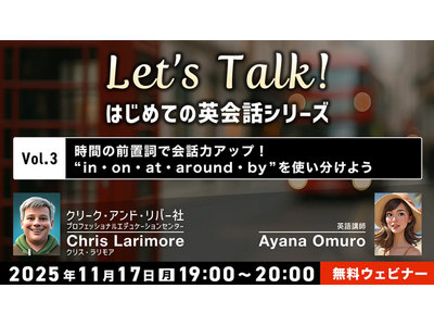 株式会社クリークアンドリバー社(C&R社)は11月17日(月)、英語初心者の方を対象に、無料のオンラインセミナー「Let's Talk! はじめての英会話シリーズ Vol.3 時間の前...