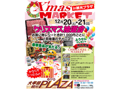 大牟田市 JR大牟田駅前の大牟田観光プラザにて、クリスマスマーケットを開催します! 大牟田市の特産品のほか、当日限定でハンドメイドアクセサリーやクリスマス商品などの販売、ワークショップを行いま...