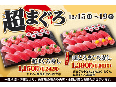 寿司といったら…まぐろ!小僧寿しでは、お得においしい【まぐろ】をお腹いっぱい楽しんでいただけるように『超まぐろ寿しフェア』を12月15日(月)~平日限定開催します!