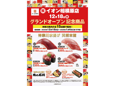 【かっぱ寿司】神奈川県で15店舗目の「かっぱ寿司 イオン相模原店」グランドオープンを記念して神奈川県内のかっぱ寿司で、神奈川水揚げ「天然本鮪 大切り赤身」を一貫160円(税込)でご提供!