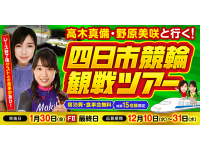 【1月イベント情報】高木真備&野原美咲 元選手と一緒に観戦!一緒に飲める食事会も!「四日市競輪現地観戦イベント」