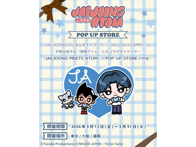 JAEJOONG(ジェジュン)の日本公式キャラクター『JAELUV&CAPPY』と手塚治虫作品『鉄腕アトム』とのコラボキャラクター『JAEJOONG MEETS ATOM』POP UP STORE開催