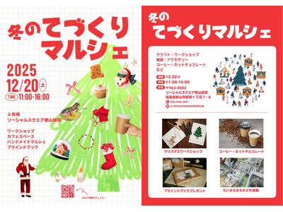 ソーシャルスクエア郡山駅前店(運営:NPO法人ソーシャルデザインワークス 代表理事:北山剛)にて、2025年12月20日(土)に、冬のてづくりマルシェを開催します。 当法人では障害の有無、国籍...