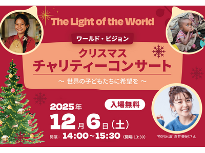 12月6日(土) 「The Light of the World ~世界の子どもたちに希望を~」温かな光を灯すワールド・ビジョン クリスマスチャリティーコンサート開催