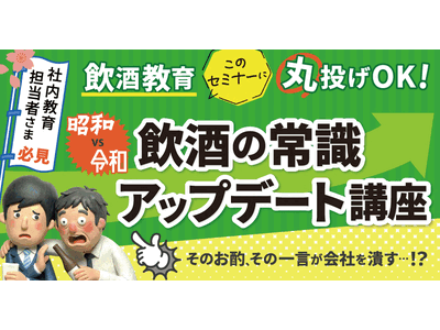 社内教育担当者さま必見!飲酒教育、このセミナーに丸投げOK!【昭和vs令和】飲酒の常識アップデート講座 4月9日(木)無料開催
