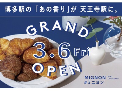 博多発の行列の絶えないミニクロワッサン専門店が【2026/3/6(金)】「天王寺ミオ」(JR天王寺駅構内)にオープンいたします。 株式会社生産者直売のれん会(本社台東区 代表取締役黒川健太)は...
