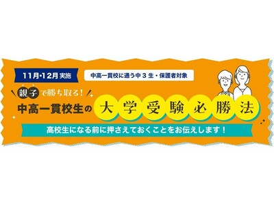 中高一貫校生だからこそ、今から始める冬の学習戦略!「親子で勝ち取る!中高一貫校生の大学受験必勝法<中3冬編>」のご案内