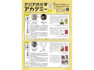 平野啓一郎さんや高妍さんもご登壇!「福岡アジア文化賞」をより深く楽しく学び・交流する特別プログラム「アジア文化賞アカデミー 特別講座」が11/8(土)福岡市総合図書館にて開催決定!