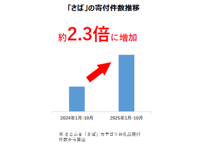 2025年1月~10月の寄付件数は前年同期比で約2.3倍に増加! ふるさと納税ポータルサイト「さとふる」を運営する株式会社さとふる(本社:東京都中央区、代表取締役社長 兼 CEO:藤井 宏明)...