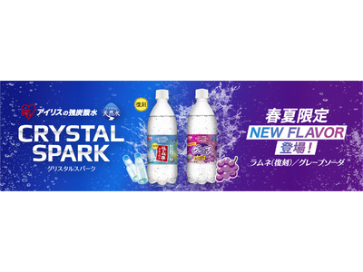 罪悪感ゼロ!無糖の強炭酸「CRYSTAL SPARK」シリーズから春夏限定フレーバー「グレープソーダ」を新発売!歴代限定フレーバー人気No.1「ラムネ」が再登場、通年発売開始!