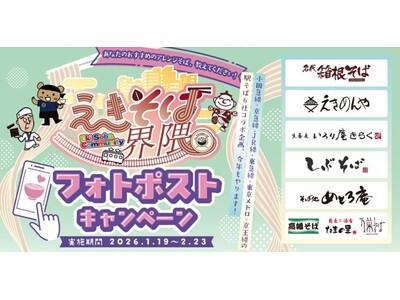 168店舗横断「えきそば界隈 フォトポストキャンペーン」実施! 2026年1月19日(月)から2月23日(月祝)まで、しぶそば全店にて実施! 2026年1月16日 株式会社東急グルメフロント ...