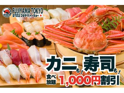 秋のご褒美チャンス到来!カニ&お寿司食べ放題が1,000円引きで楽しめる"カニ割!キャンペーン"実施!【FUJIYAMA TOKYO 大阪難波店】