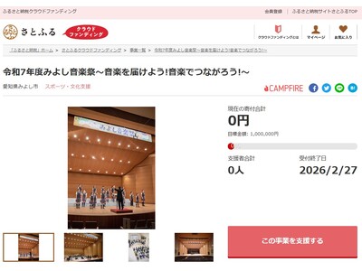 ~クラウドファンディング型ふるさと納税を活用し寄付を募集~ 愛知県みよし市とふるさと納税ポータルサイト「さとふる」を運営する株式会社さとふる(本社:東京都中央区、代表取締役社長 兼 CEO:藤...