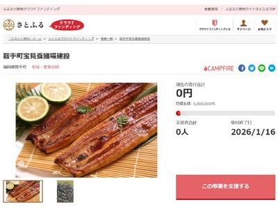 福岡県鞍手町とさとふる、新たな特産品として「うなぎ」のブランド化を進め雇用創出・地域活性化を図るため、寄付受け付けを開始