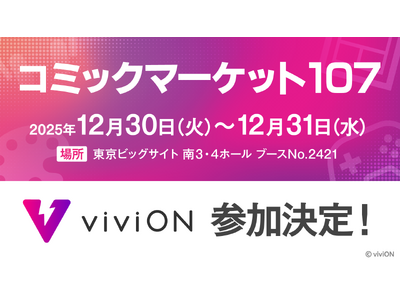 株式会社 viviON(所在地:東京都千代田区、代表取締役:明石耕作、以下 viviON)は、2025年12月30日(火)、31日(水)に開催されるイベント「コミックマーケット107」への出展...