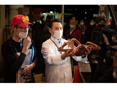 カニ漁解禁日の11月6日、漁師漁協仲買人が一体となり、加能ガニ香箱ガニの初セリを盛り上げます 初年度の「輝」は加能ガニのセリ史上最高の500万円で落札蟹1グランプリの様子 日時:11月6日(木...