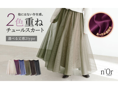 "透け感"を秋冬に楽しむ?!大好評アイテム『n'OrLABEL裏起毛配色ボリュームチュールスカート』を季節に合わせた着心地に進化させ、10月20日(月)に新発売します。【オシャレウォーカー】