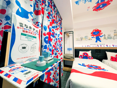 大阪2軒の変なホテル 「ミャクミャクコラボルームプレミア」販売延長に伴いホテルオリジナル『ミャクミャク』スタンプ台を客室に設置