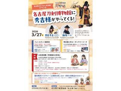 名古屋刀剣博物館では、3月27日(金)に特別ゲスト「名古屋おもてなし武将隊(R)」の豊臣秀吉様と踊舞様を迎えて、1日限定イベントを開催!お抹茶体験やギャラリートークなど楽しい学びが盛りだくさん...