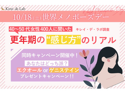 「エクオール派?ゲニステイン派?」をテーマに、メノポーズ応援キャンペーンを開催 女性の年齢にともなう変化をサポートするブランド「キレイデラボ」(運営:株式会社ウエルネスラボ)は、10月18日の...