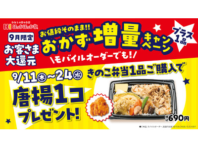 9月11日(木)から24日(水)まで、もれなく唐揚1個プレゼント 持ち帰り弁当事業のパイオニアである「株式会社ほっかほっか亭総本部」(本社:大阪府大阪市、代表取締役会長兼社長:青木達也)は、2...