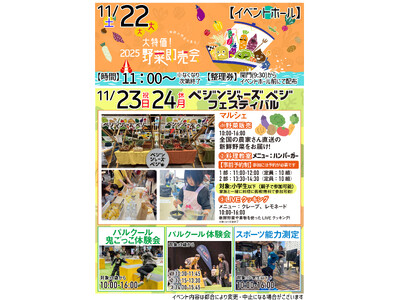 「大大大特価!野菜即売会」や「ベジンジャーズベジフェスティバル」を開催! イベント1. 11/22(土) 【2025秋 大大大特価!野菜即売会 in BOATRACE宮島】 採れたて旬野菜を驚...