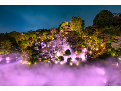 【ホテル椿山荘東京】初演出"花あかり"が誕生、桜の花びらが舞う光景が織りなす春夜の風物詩新「夜桜雲海」を2月6日よりスタート