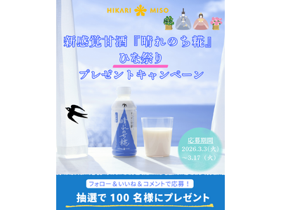 ひかり味噌株式会社※1(長野県諏訪郡下諏訪町、代表取締役社長 林 善博 以下、当社) は、新感覚甘酒『晴れのち糀』の発売1周年を記念し、同商品1箱(10本入り)が合計100名様に当たるキャンペ...