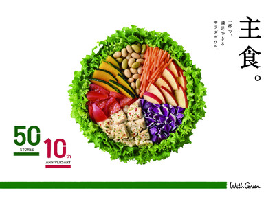 サラダボウル専門店を運営する株式会社WithGreen(本社:東京都中央区、代表取締役:武文智洋)は、2026年3月の50店舗達成および5月の創業10周年を記念し、お客さまへ感謝を込めたプレゼ...