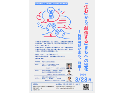 町田市未来づくり研究所 研究報告会開催 町田市未来づくり研究所(所長 市川宏雄)では、現在「持続可能なまち、町田」を目指すための調査研究を行っています。このたび、研究成果を報告するため、研究報...