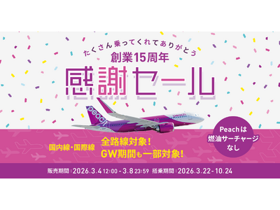 ~15周年を機にブランドリニューアルを決定~ Peach Aviation株式会社(以下:Peach、代表取締役CEO:大橋 一成)は、2026年2月10日に創業15周年を迎えました。これまで...
