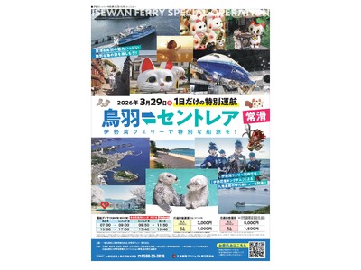~伊勢湾フェリーで特別な船旅を!~ 一般社団法人鳥羽市観光協会と伊勢湾フェリー株式会社は、2026年3月29日(日)の1日限定で鳥羽港と中部国際空港セントレアをダイレクトに結ぶ「伊勢湾フェリー...