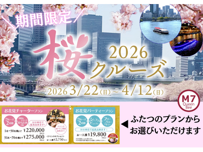 《期間限定!》最新鋭の次世代EV(電気)船「Queen Bee M7」で大阪の街並みと船上でのお花見を楽しめる「桜クルーズ」を期間限定で予約受付開始!!