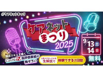 株式会社ケアネット(本社:東京都千代田区、代表取締役社長:藤井勝博、以下「ケアネット」)は、2025年9月13日(土)、14日(日)に医療者向け無料オンラインLIVEイベント「ケアネットまつり...