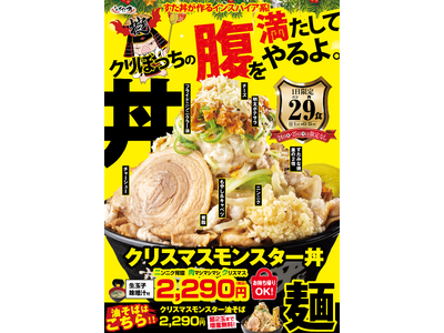 SNSで話題沸騰中!"大盛り肉丼界のパイオニア"が贈る大迫力のクリスマスプレゼント!クリスマス前から注文殺到の「クリスマスモンスター丼」好評発売中!