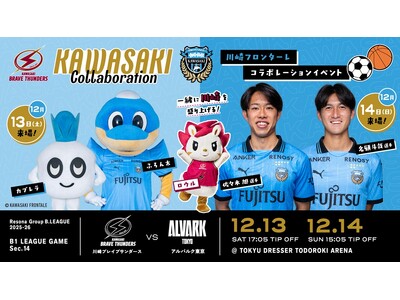 川崎ブレイブサンダースでは、12月13日(土)、14日(日)に開催するホームアルバルク東京戦(会場:東急ドレッセとどろきアリーナ)において、川崎市をホームタウンとするJリーグクラブ「川崎フロン...