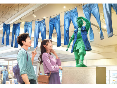 吊り下げジーンズ装飾やデニム陣羽織の桃太郎像の展示、デニム色クッキーの販売~初日限定!ウエストランドがアルバイトスタッフとして登場~ 長年にわたる職人の技術とこだわりが詰まった高品質なデニム製...