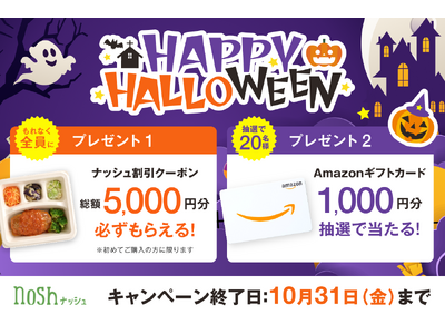 ~10月16日(木)から10月31日(金)まで開催~ 「世界中の人々が健康で豊かに生活できる未来を届ける。」をミッションに掲げ、手軽に美味しく栄養管理ができる冷凍宅配食サービス「nosh(ナッ...