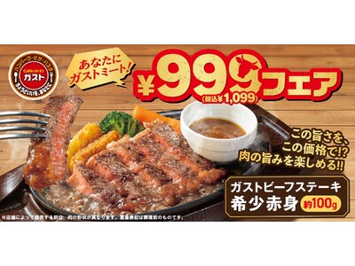 ガストに食欲の秋到来!この旨さを、この価格で!?9/11~希少赤身ステーキ登場!『あなたにガストミート!』¥999(税込¥1,099)フェア