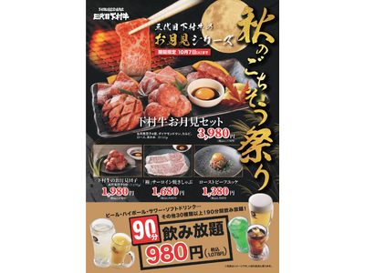 <愛知・大府>今年の秋は、黒毛和牛"下村牛"で月見を愉しもう!下村牧場直営焼肉店 三代目下村牛にて"秋のごちそう祭り"『お月見セット』が新登場!
